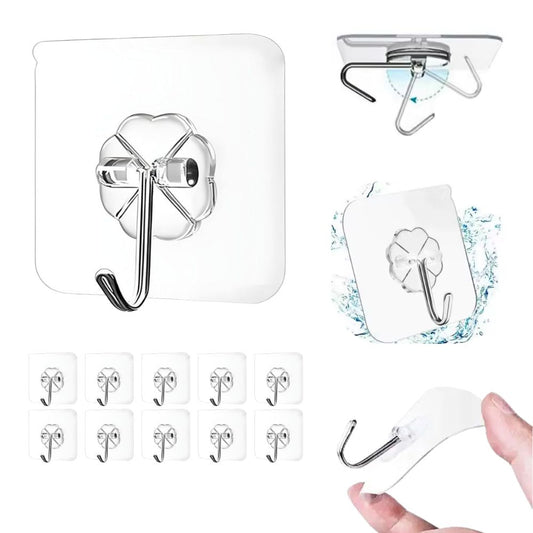 Pack of 10 Multifunctional, Transparent, Self-Adhesive Multi-Purpose Hooks