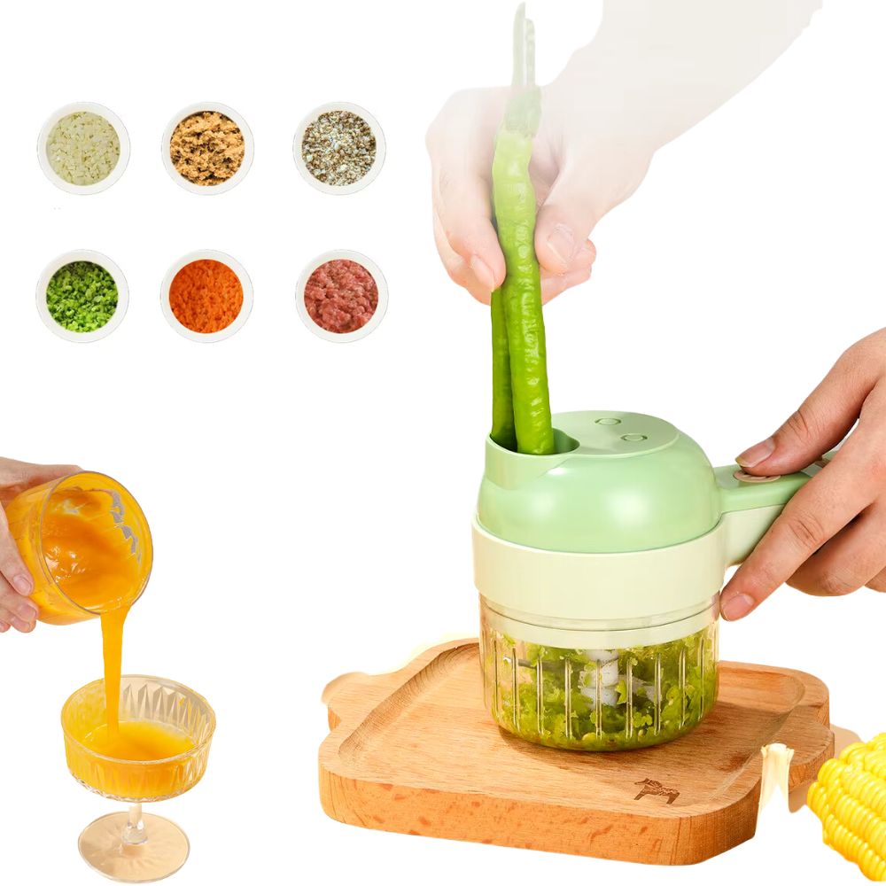 4-in-1 Wireless Electric Vegetable Cutter with USB Charging | Chopping, Slicing, Mixing and Peeling