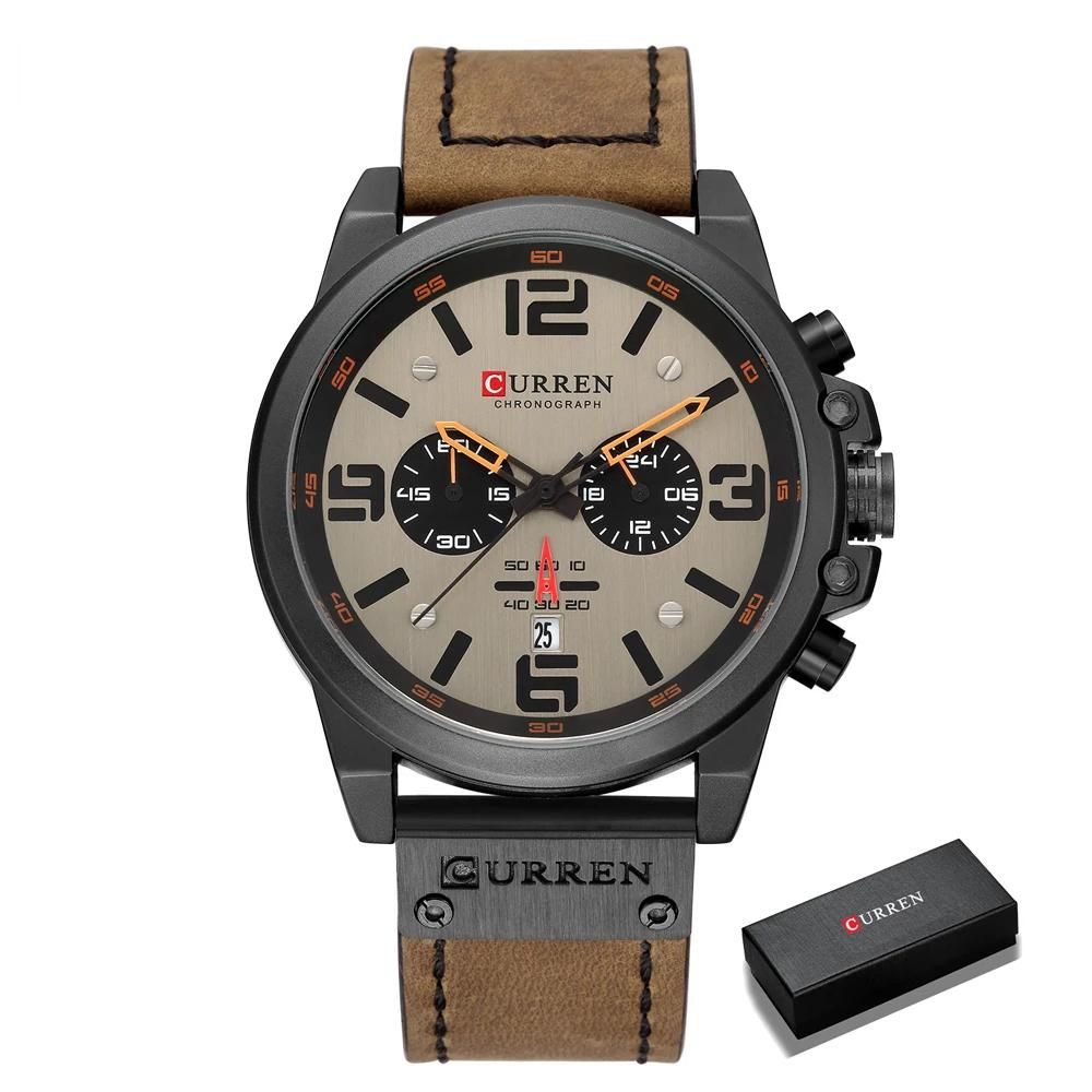 CURREN Luxury Chronograph Quartz Watch for Men with Leather Strap