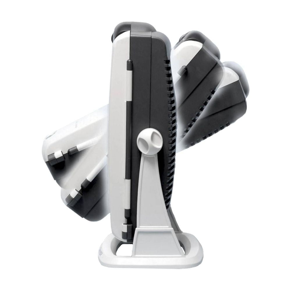Hinged design with double doors and spring buttons - ideal for targeted facial tanning