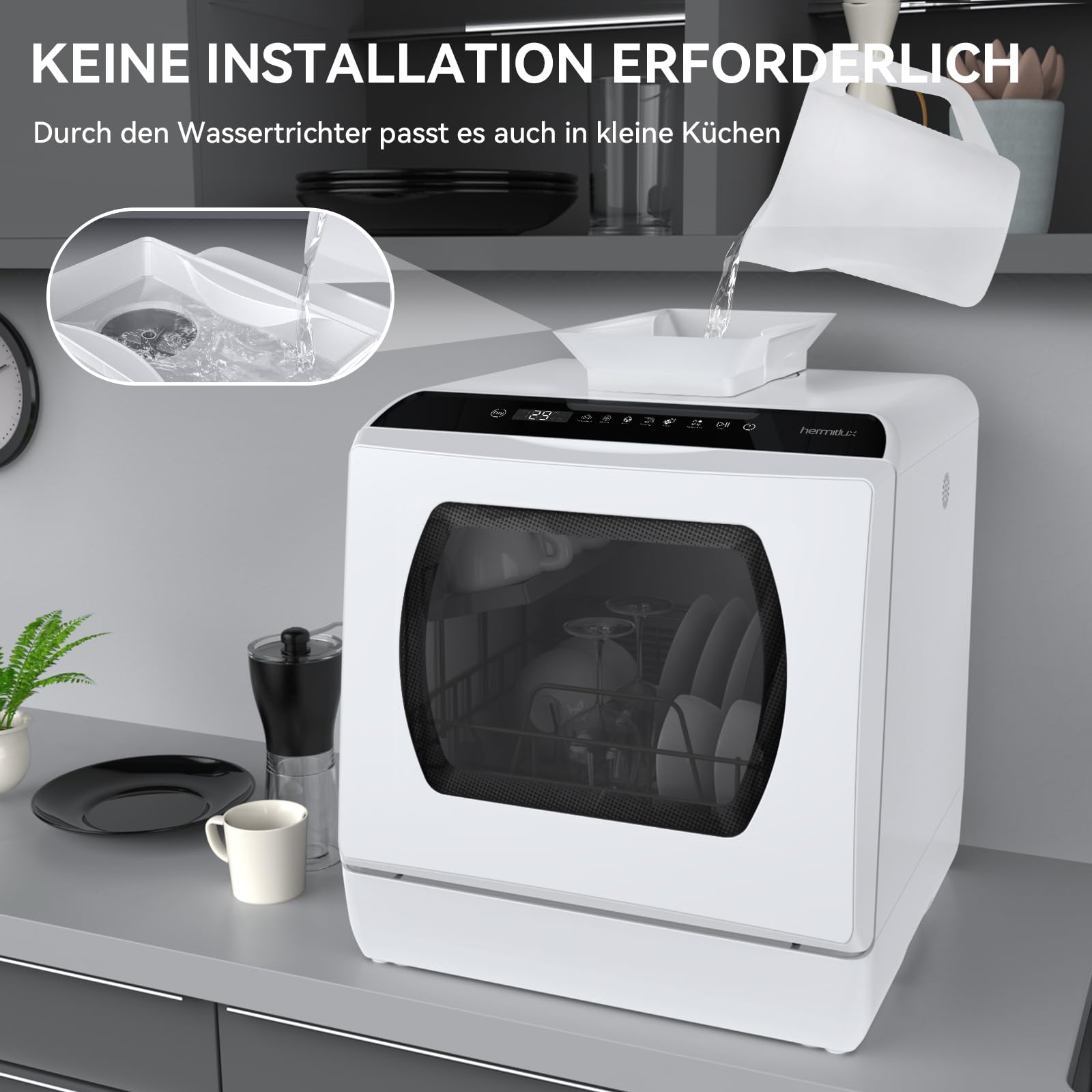 Hermitlux mini dishwasher for 4 sets of cutlery, 5 litre water tank, 6 programmes