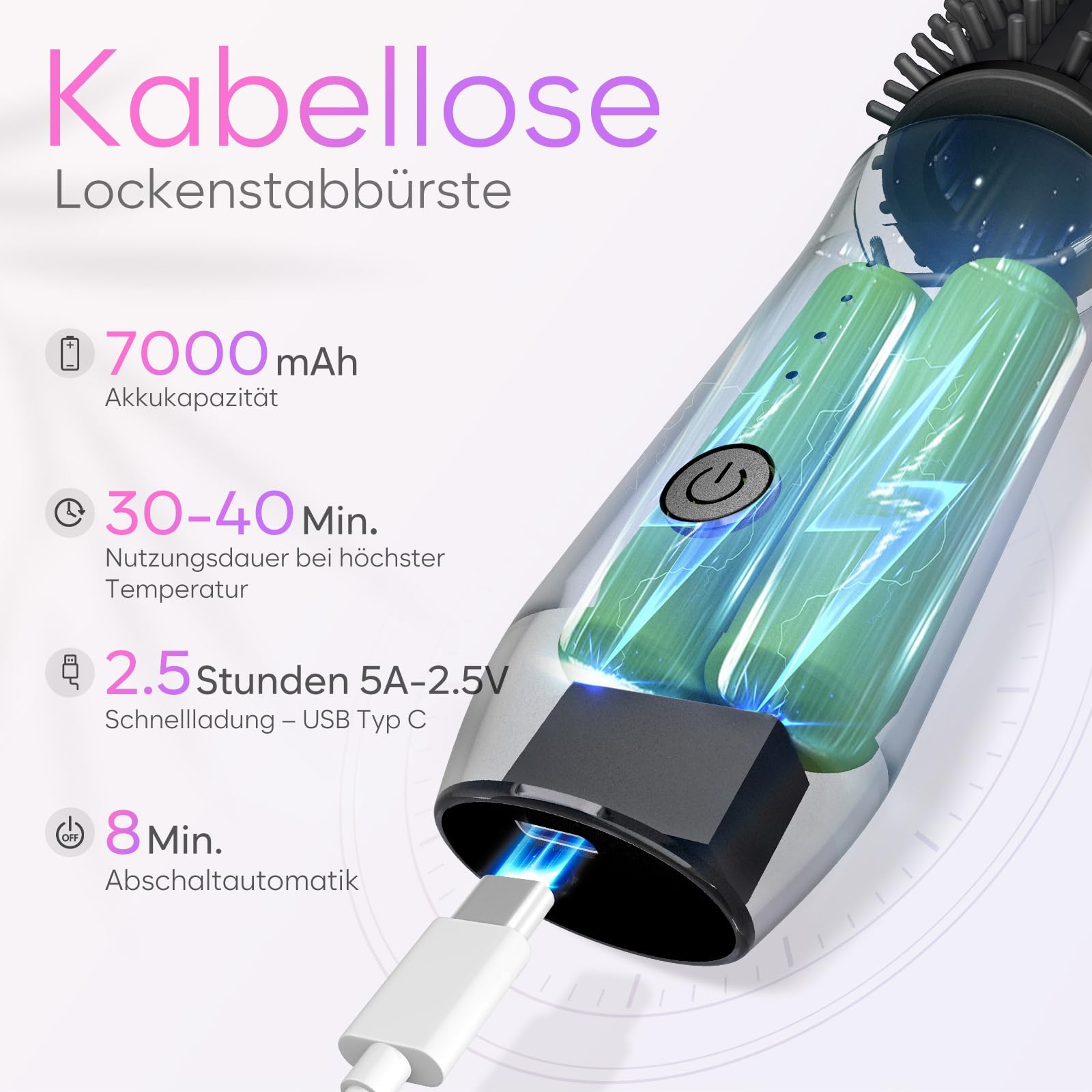 Wireless Travel Curling Iron Mini Brush for Women (7000mAh): USB Rechargeable with Negative Ions