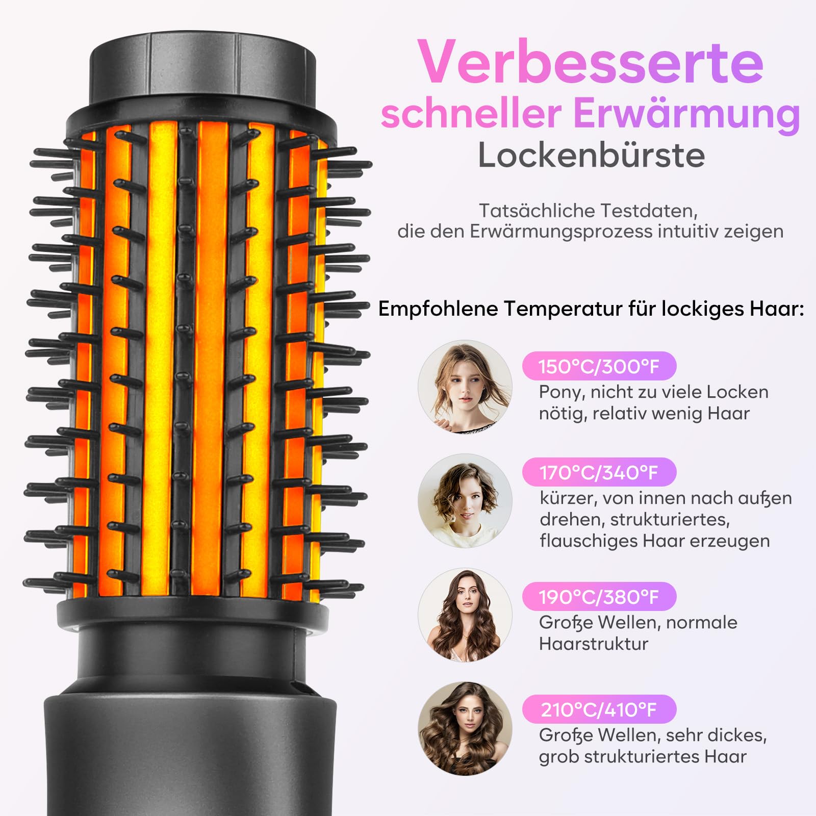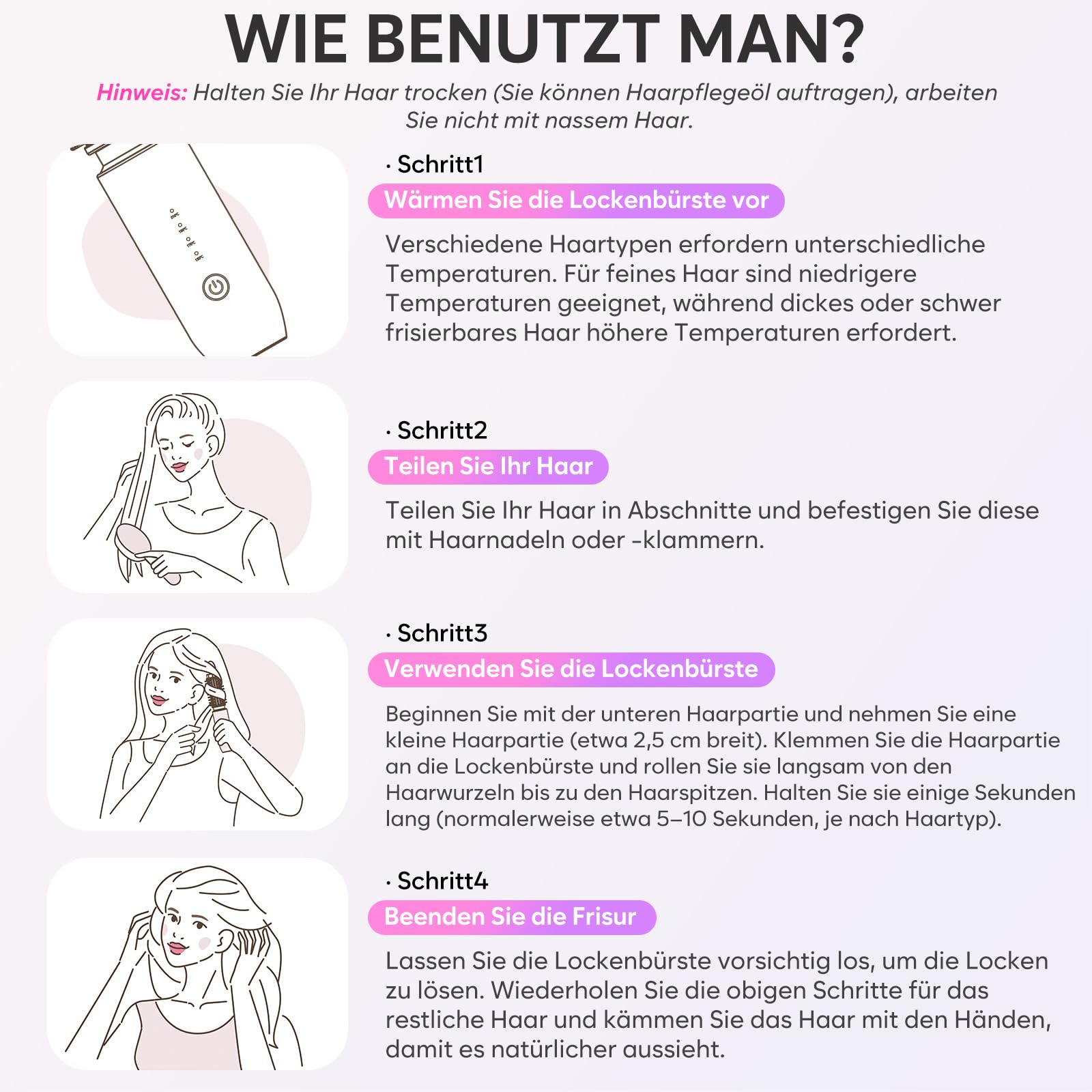- Four adjustable temperature levels for different hair types