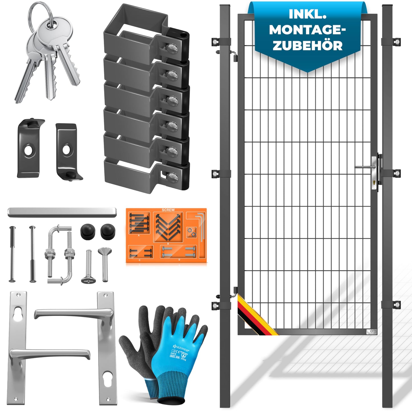 KESSER® Premium metal garden gate with galvanized steel including posts, door handle, key