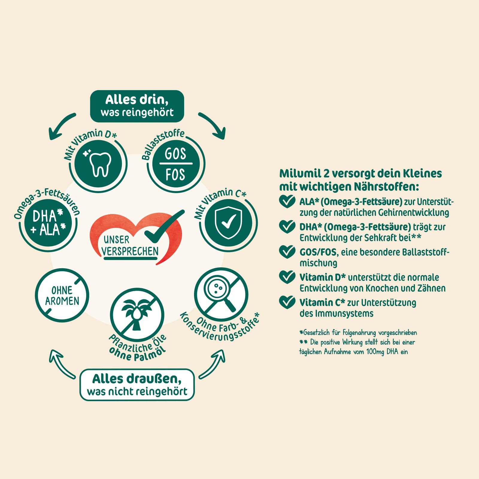 Quality promise: Without palm oil , with a proven mix of lactose and important vitamins.