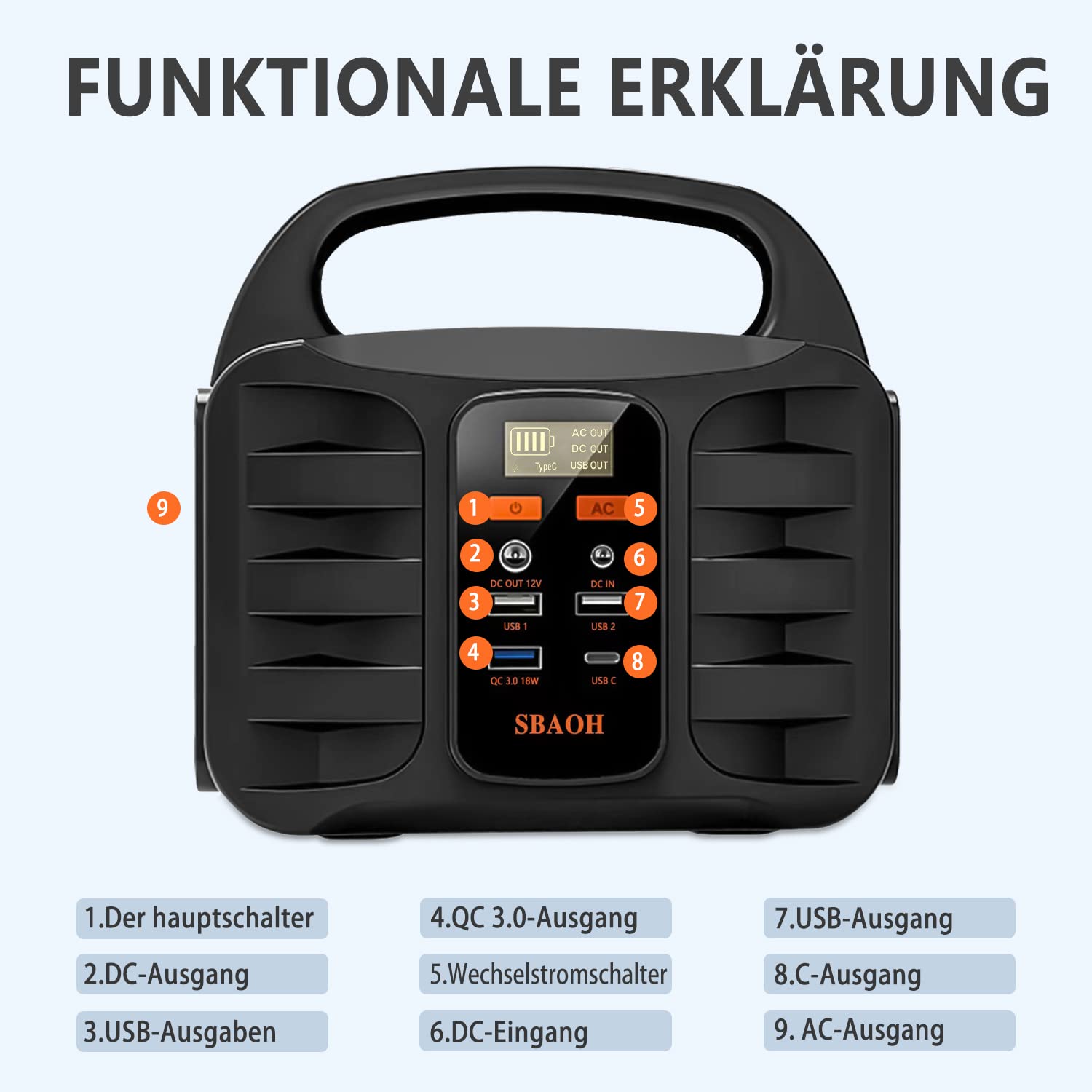 Outdoor Powerstation 'SBAOH' 99Wh, 150W: Solar Generator Battery for Travel & Camping