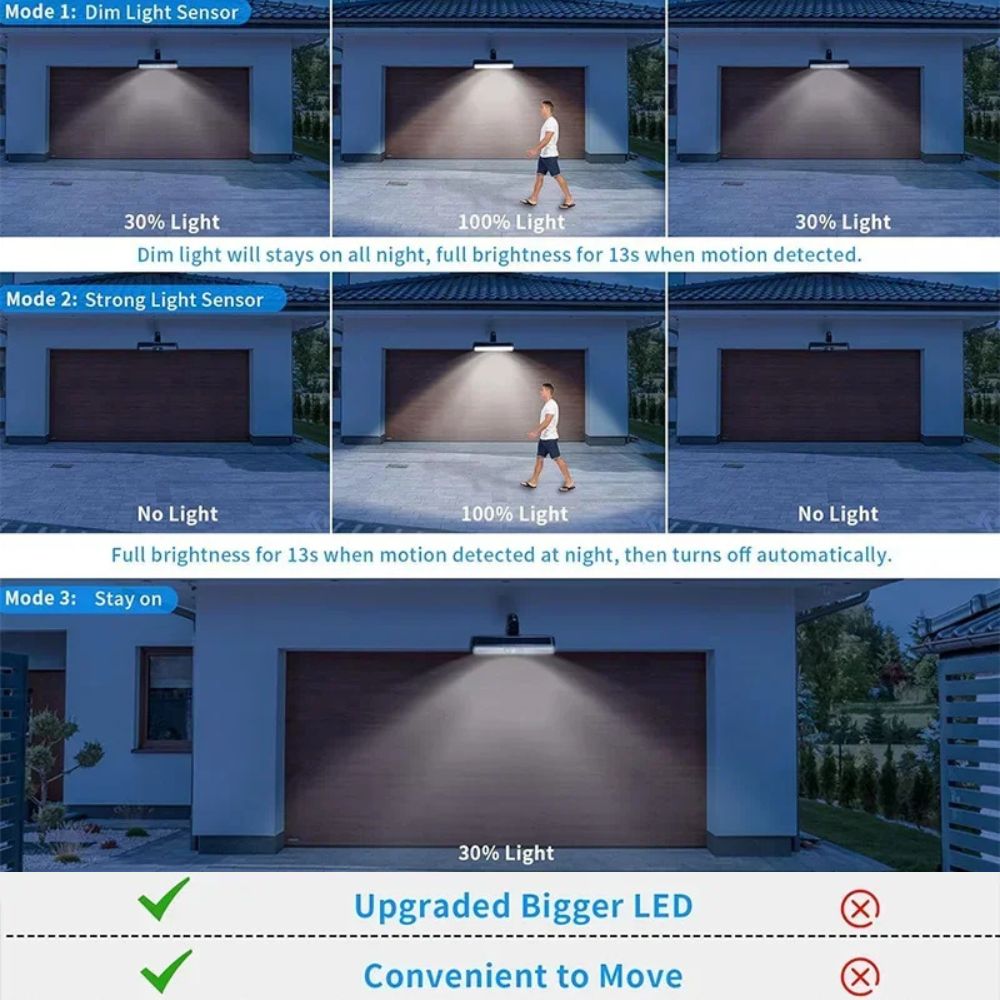 Super-bright lighting: Equipped with 36 advanced LEDs and a brightness of 400 lumens, these solar lights effortlessly illuminate an area of ​​up to 5 m². Ideal for a recommended installation height of 1.5 to 2.5 meters.
