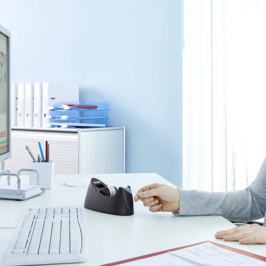 tesa Easy Cut® Curve Tischabroller: Rutschfest, einfache Handhabung, sauberer Schnitt