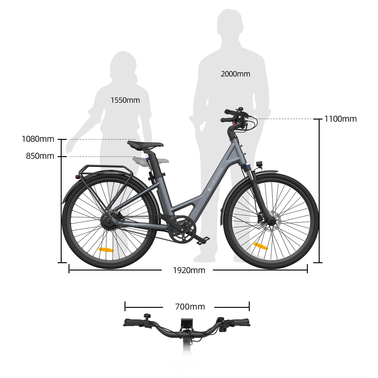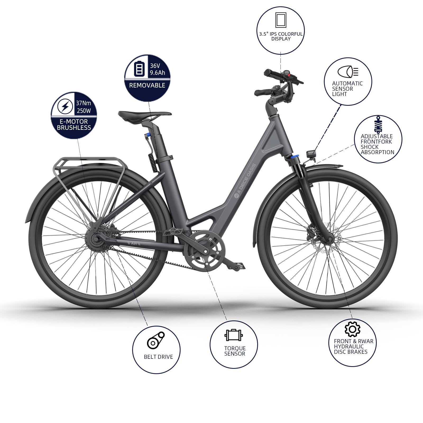 ADO Air 28 E-Bike (2 Stück): 345,00 Wh Akku, Momenten-Sensor, Riemenantrieb, APP (Grau)