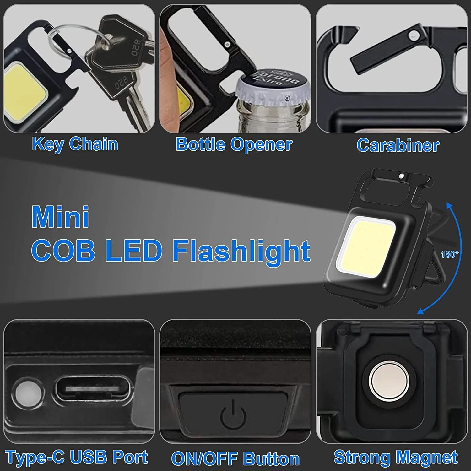 COB-Schlüsselbund LED | 3-Lichtmodi, Klappbar, Wiederaufladbar