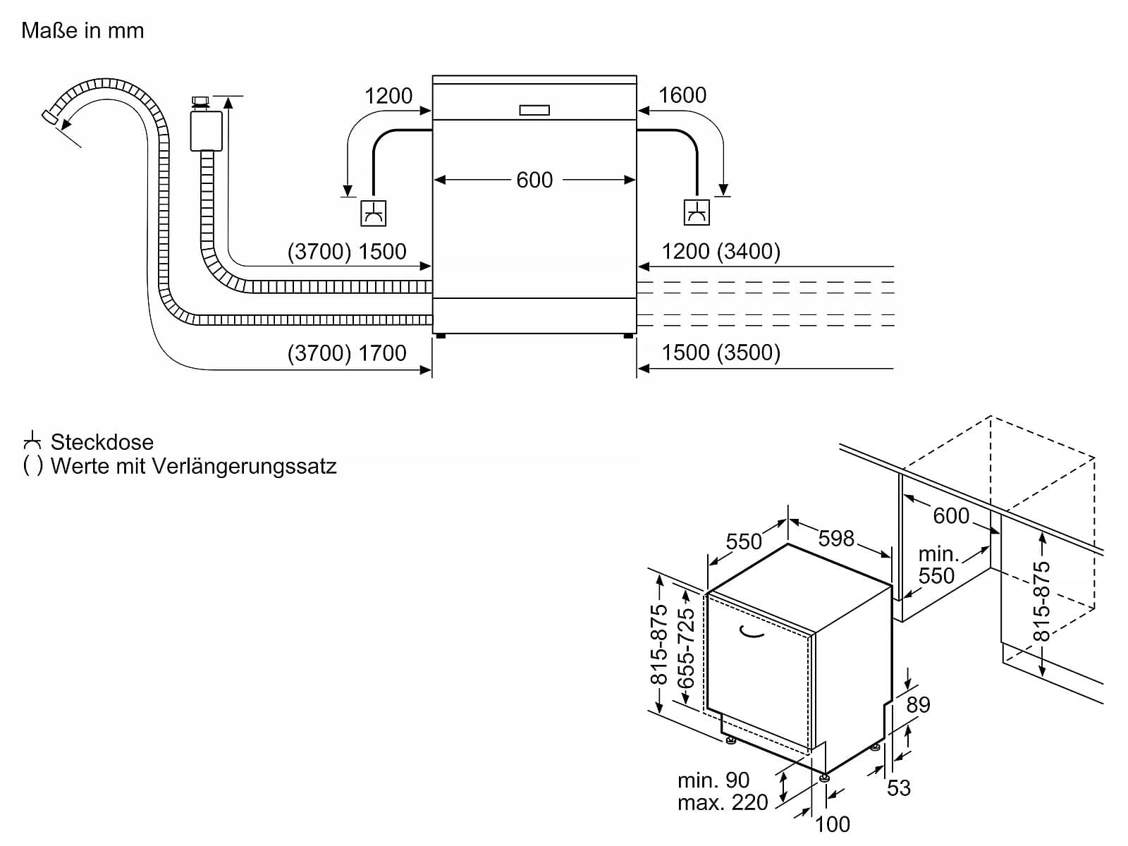 • Wasserverbrauch: 9,5 L/Zyklus
