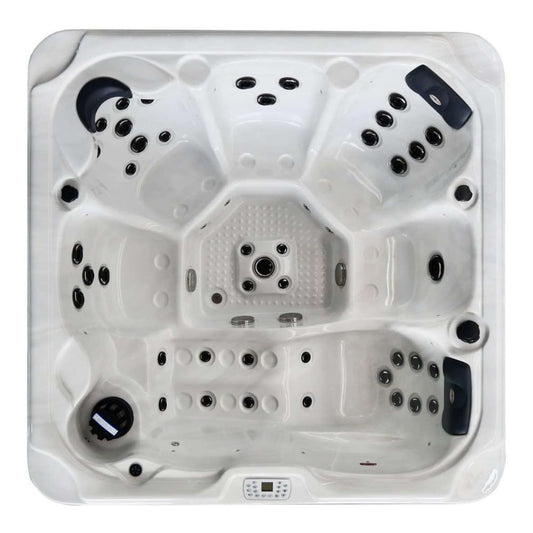 Outdoor-Whirlpool OASIS MAXI mit Abdeckung & Steige: 52-Massagedüsen, LED, Lautsprecher, Bluetooth