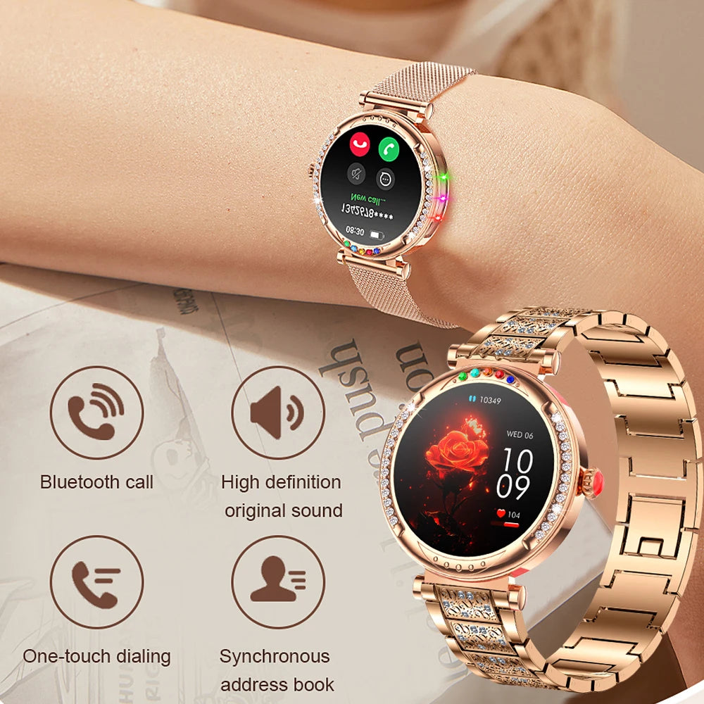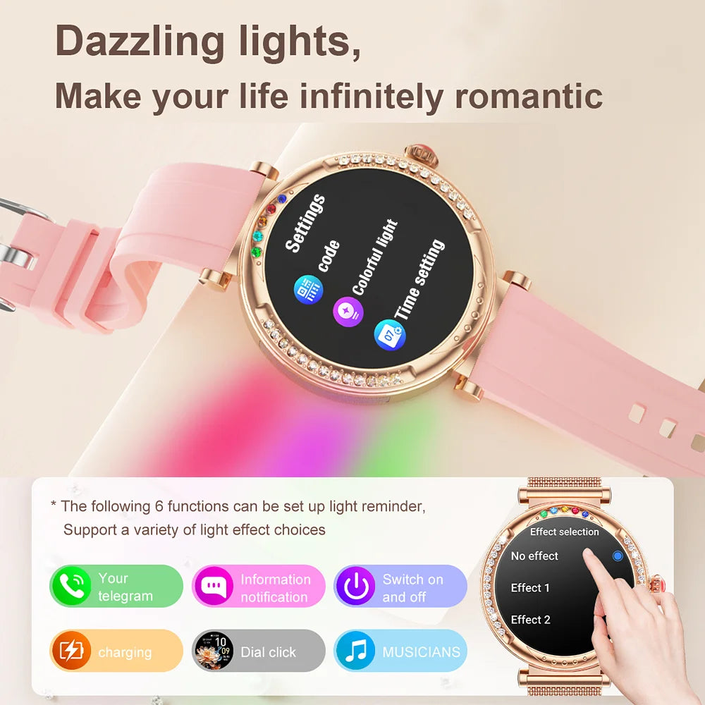 Damen Smartwatch mit Farbiger Leuchtanzeige | Herzfrequenzmessung, Bluetooth-Anrufe, Wasserdicht