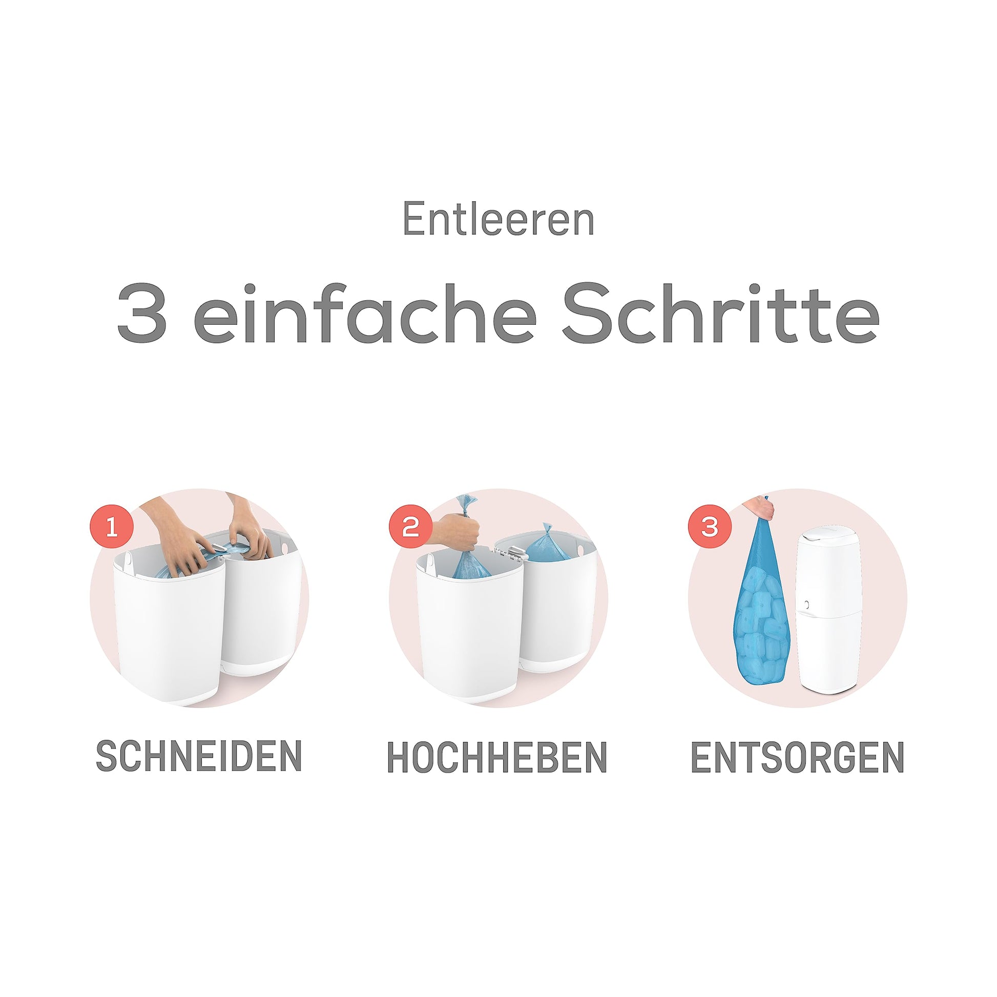 Die rückenfreundliche Höhe ermöglicht ein bequemes Einwerfen der Windeln ohne Bücken. Das extra große Fassungsvermögen reduziert den Gang zur Mülltonne erheblich. Ideal für Familien, die Wert auf praktische Lösungen und hygienische Entsorgung legen.