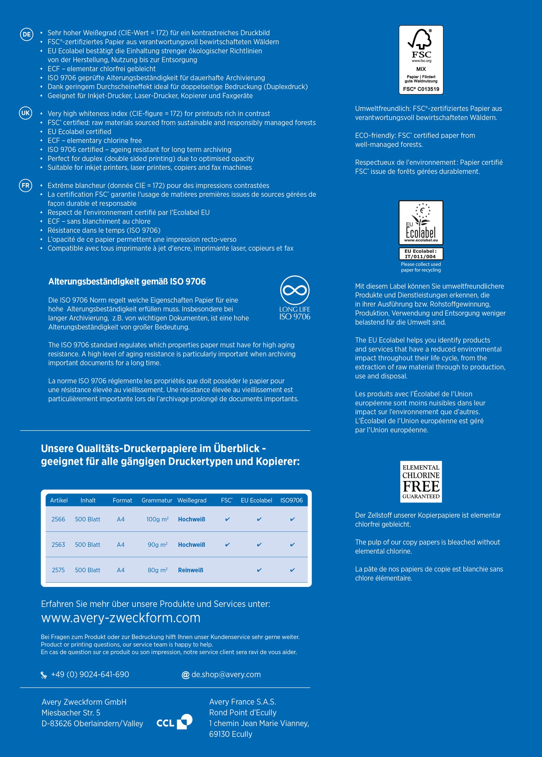 AVERY Zweckform (2563) Drucker-/Kopierpapier | 500 Blatt, DIN A4 für alle Drucker