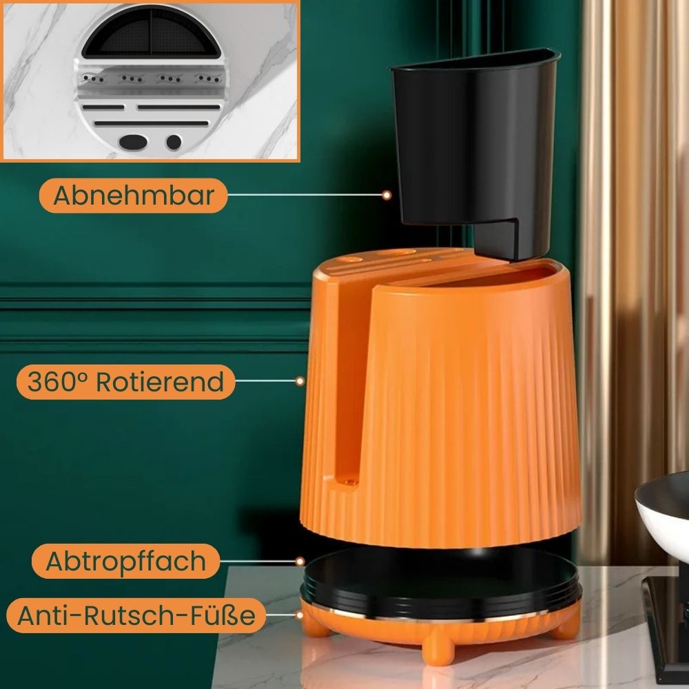 Das innovative, 360-Grad drehbare Design ermöglicht Ihnen, schnell und einfach auf Ihre Küchenutensilien zuzugreifen. Nie wieder unübersichtliche Schubladen - alles ist griffbereit!