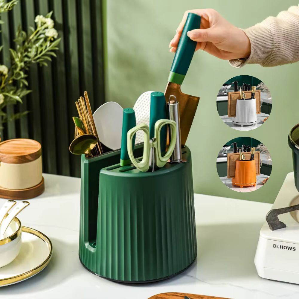 Drehbarer Messer- & Utensilienhalter mit Schneidebrettfach | Multifunktionaler Küchen-Organizer für Besteck