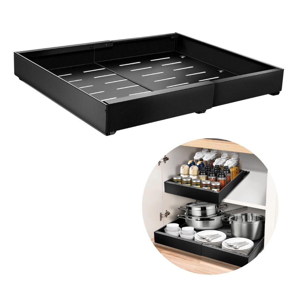 ICARE Einstellbare Kohlenstoffstahl-Teleskopschublade (32-52cm): Ausziehbarer Küchenorganizer