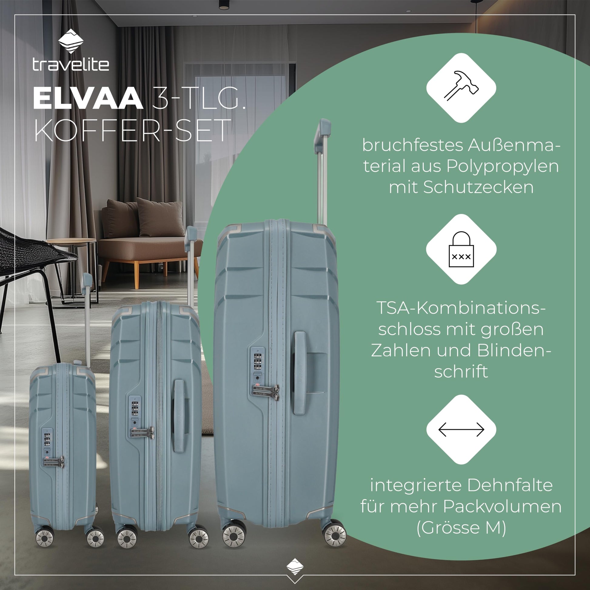 TRAVELITE 'Elvaa' Hartschalen Reisekoffer-Set (3-teilig) mit recyceltem Innenfutter, TSA-Schloss