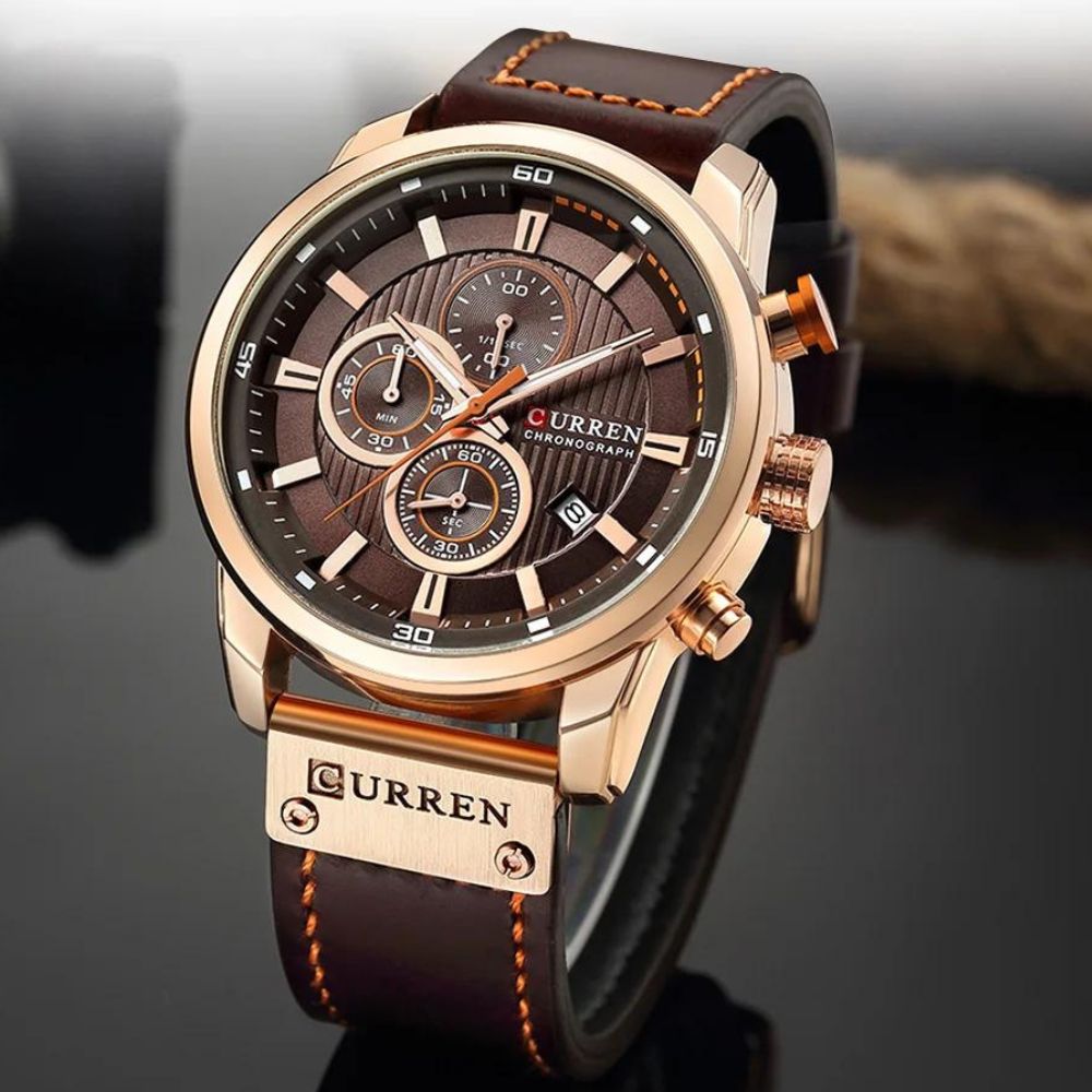 Mit einem robusten Gehäuse aus einer langlebigen Legierung und einem Armband aus echtem Leder bietet die CURREN Uhr ein luxuriöses Tragegefühl. Die Kombination aus modernem Chronographen-Stil und klassischer Quarzuhr-Technologie verleiht Ihnen sowohl Stil als auch Präzision.