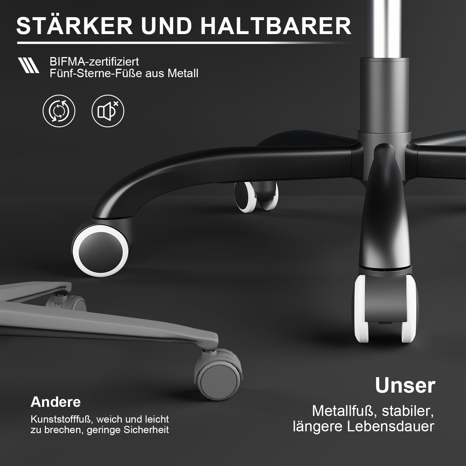 Ausgestattet mit robustem Stahlrahmen, hochwertigem PU-Leder und BIFMA-Zertifizierung - stabil bis 150 kg belastbar.