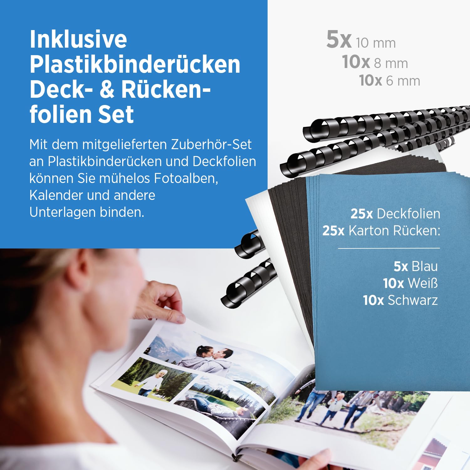 - Starter-Set inklusive: Mit Binderücken, Deckfolien und Rückenkartons - sofort startklar ohne separates Zubehör