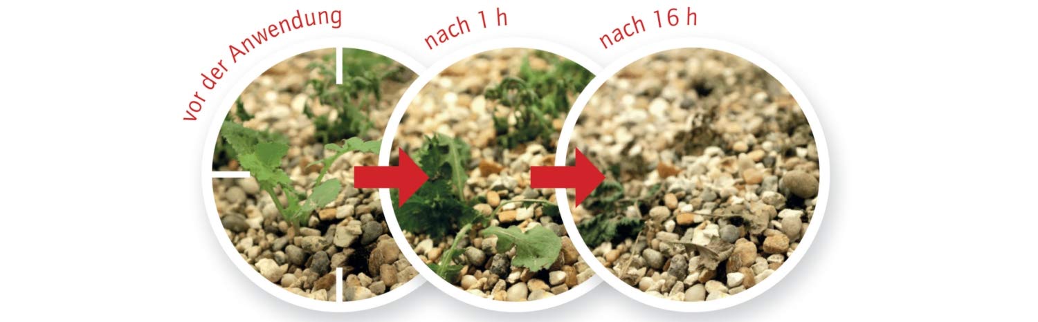 - Sichtbare Wirkung bereits nach 1 Stunde: Effektives Kontaktherbizid gegen einjährige zweikeimblättrige Unkräuter und Ungräser