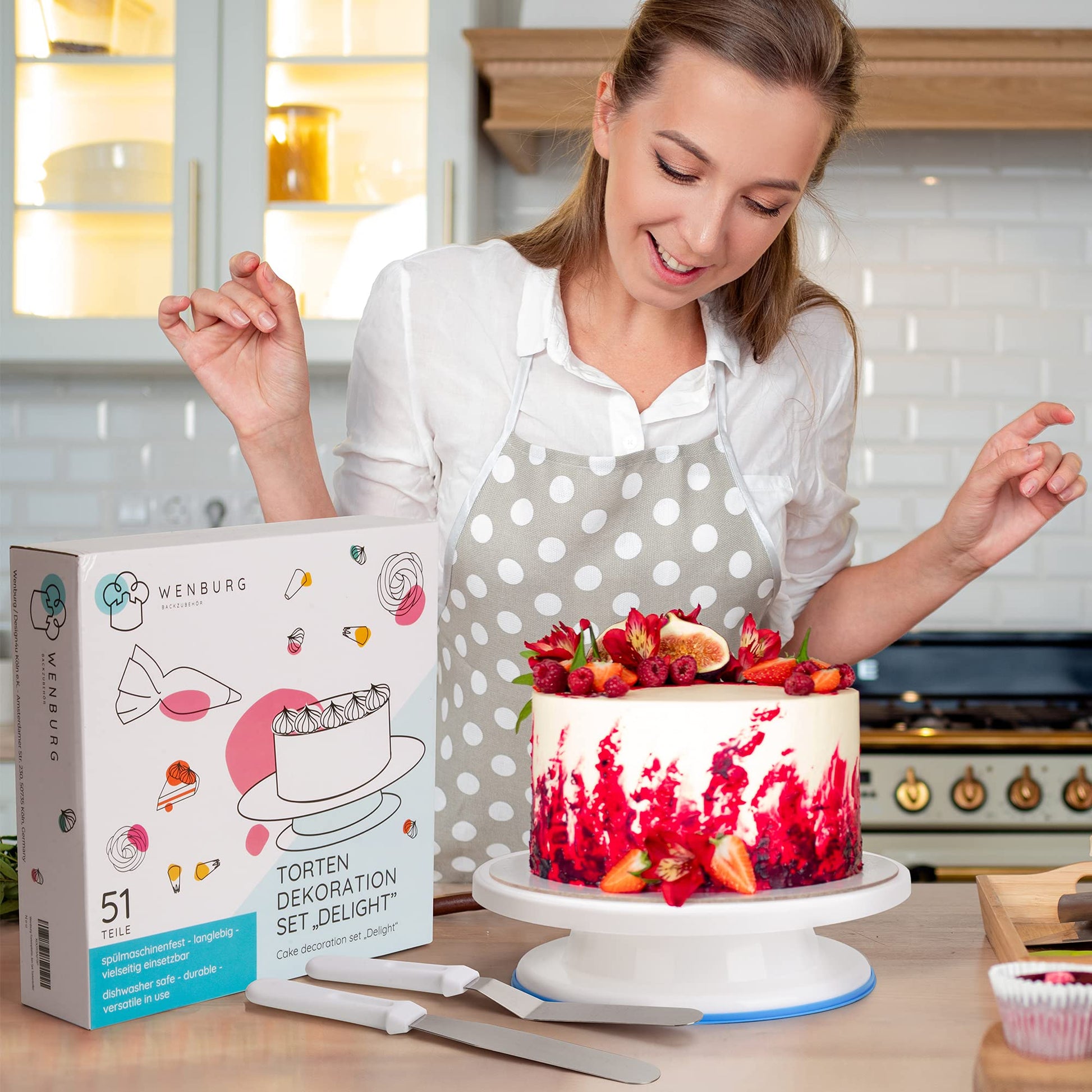 Vielseitiges Set: 51-teiliges Torten Set mit einer 360° drehbaren Tortenplatte, ideal für präzises Dekorieren